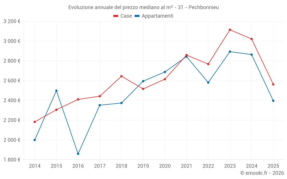 Qual è il prezzo al m2 delle case in Pechbonnieu?
