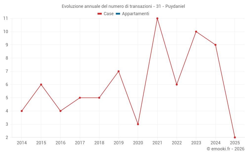 Il prezzo mediano sulle 14 transazioni di case degli ultimi 24 mesi nel comune di Puydaniel era di 2 056 € al metro quadrato per un valore patrimoniale mediano di 218 400 €. In questo periodo il 60% delle transazioni era tra 1 153 e 2 751 € al metro quadrato (dal 2° all'8° decile).