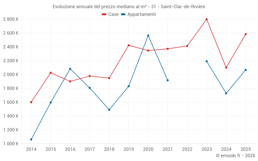 Qual è il prezzo al m2 delle case in Saint-Clar-de-Rivière?