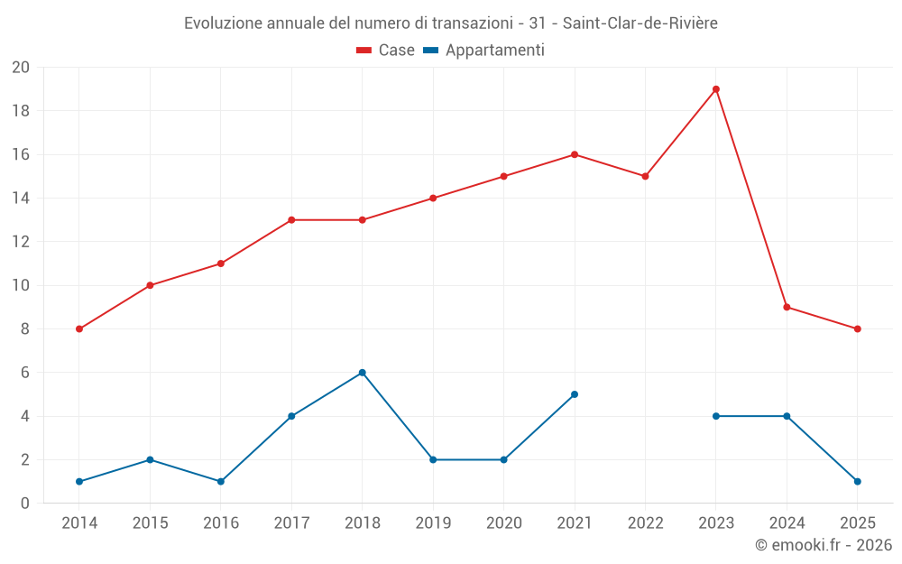 Il prezzo mediano sulle 25 transazioni di case degli ultimi 24 mesi nel comune di Saint-Clar-de-Rivière era di 2 675 € al metro quadrato per un valore patrimoniale mediano di 261 240 €. In questo periodo il 60% delle transazioni era tra 1 744 e 2 932 € al metro quadrato (dal 2° all'8° decile).