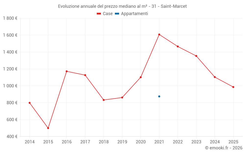 Evoluzione del prezzo mediano al m² degli appartamenti