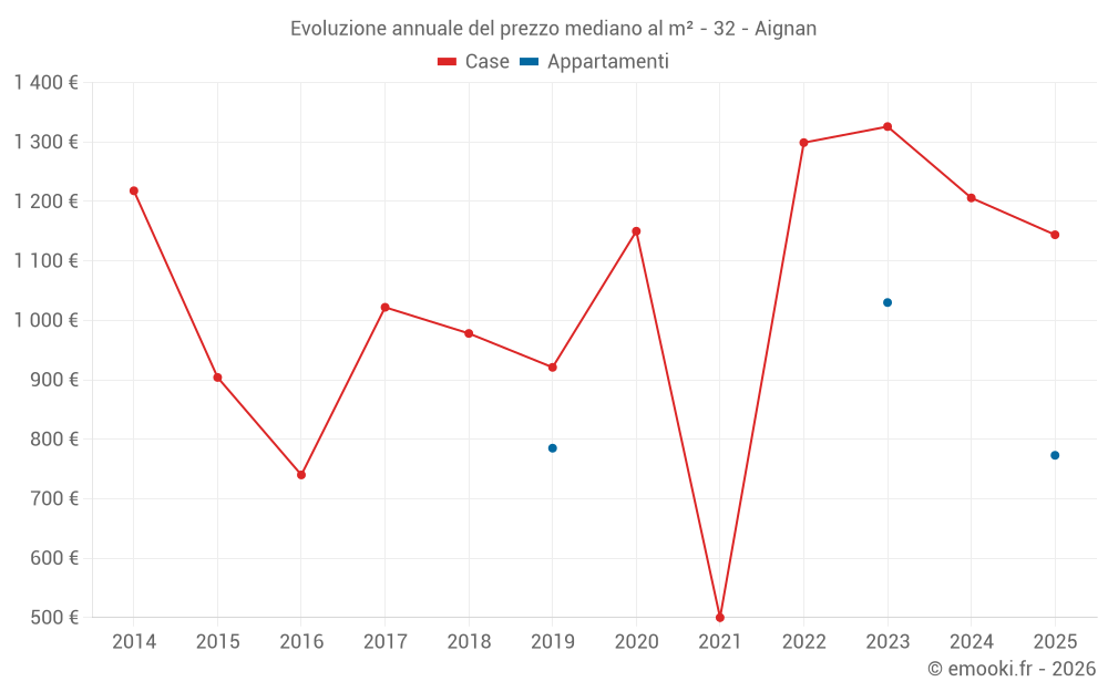Il prezzo mediano sulle 20 transazioni di case degli ultimi 24 mesi nel comune di Aignan era di 1 198 € al metro quadrato per un valore patrimoniale mediano di 120 895 €. In questo periodo il 60% delle transazioni era tra 737 e 1 668 € al metro quadrato (dal 2° all'8° decile).