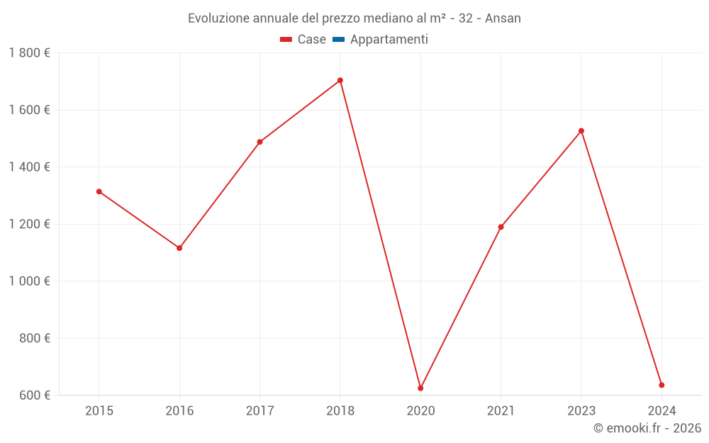 Evoluzione del prezzo mediano al m² degli appartamenti