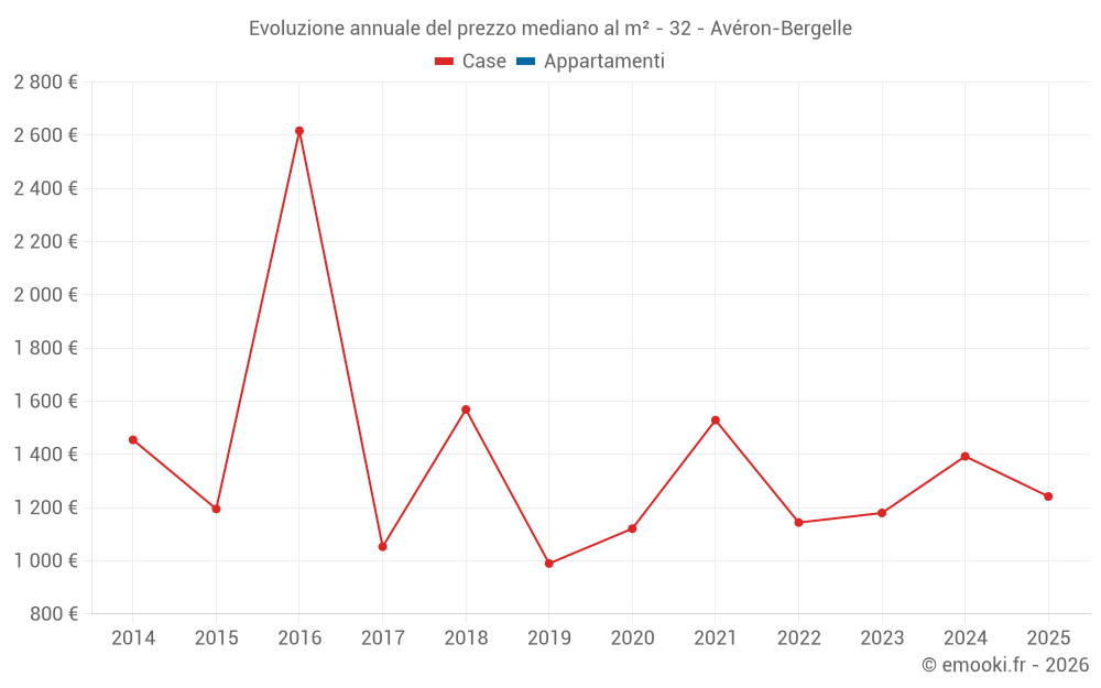 Evoluzione annuale del prezzo mediano al m²