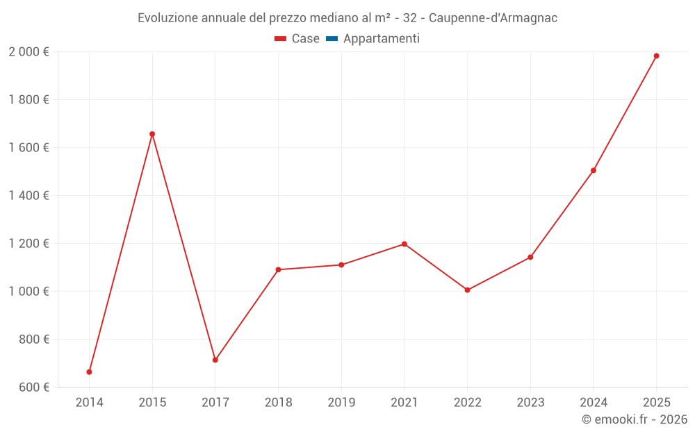 Evoluzione del prezzo mediano al m² degli appartamenti
