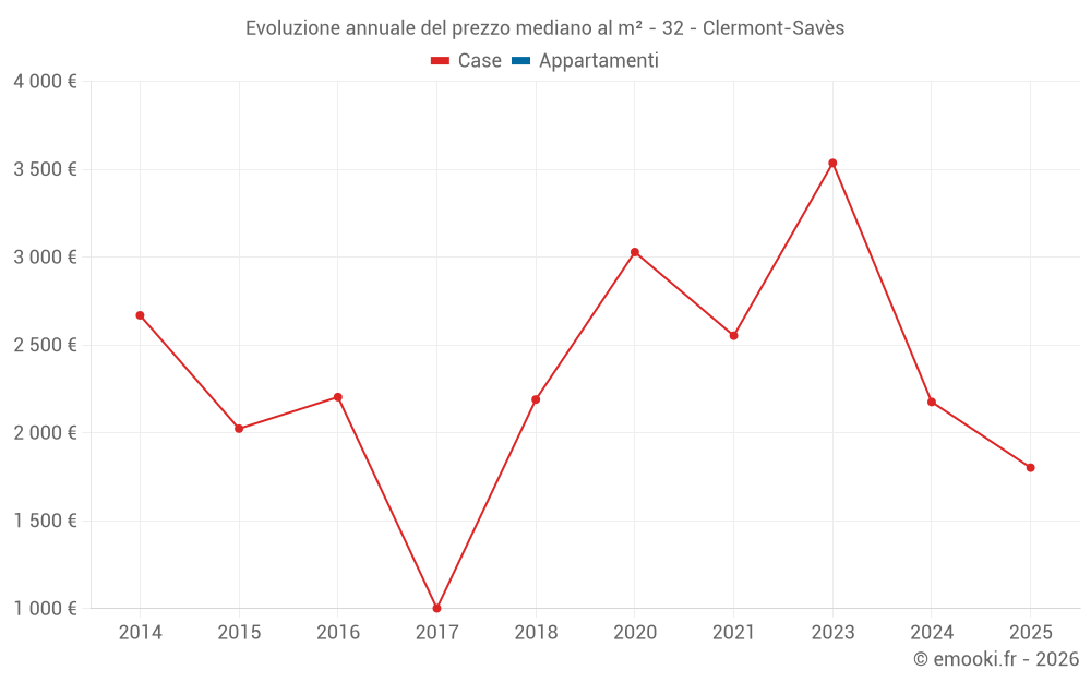 Evoluzione del prezzo mediano al m² degli appartamenti
