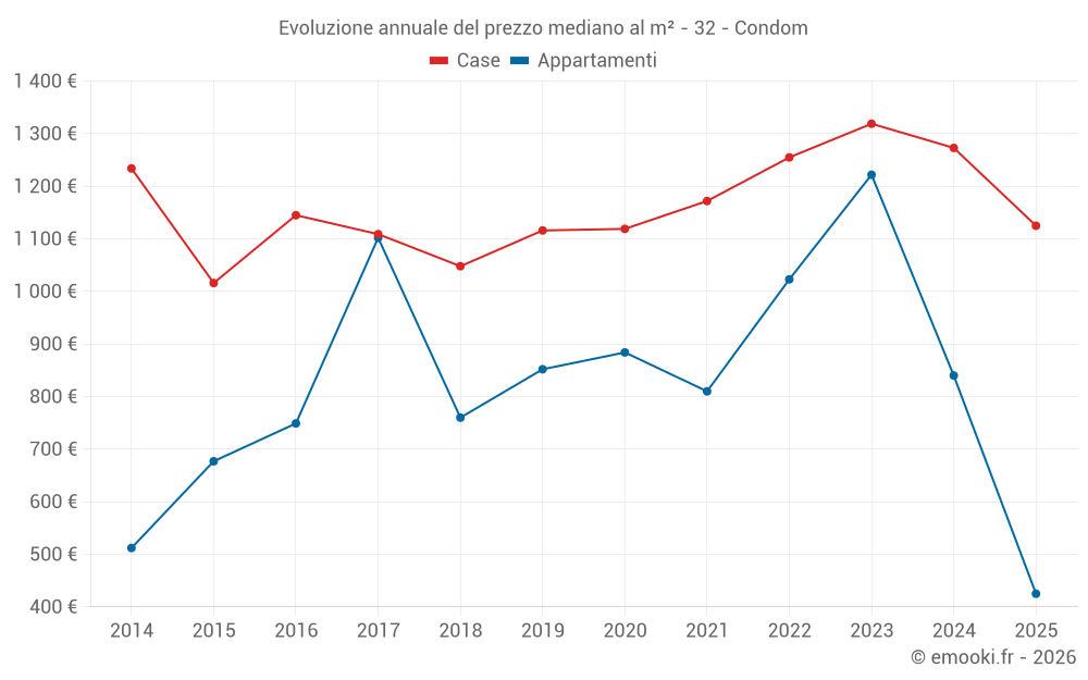 Qual è il prezzo al m2 delle case in Condom?