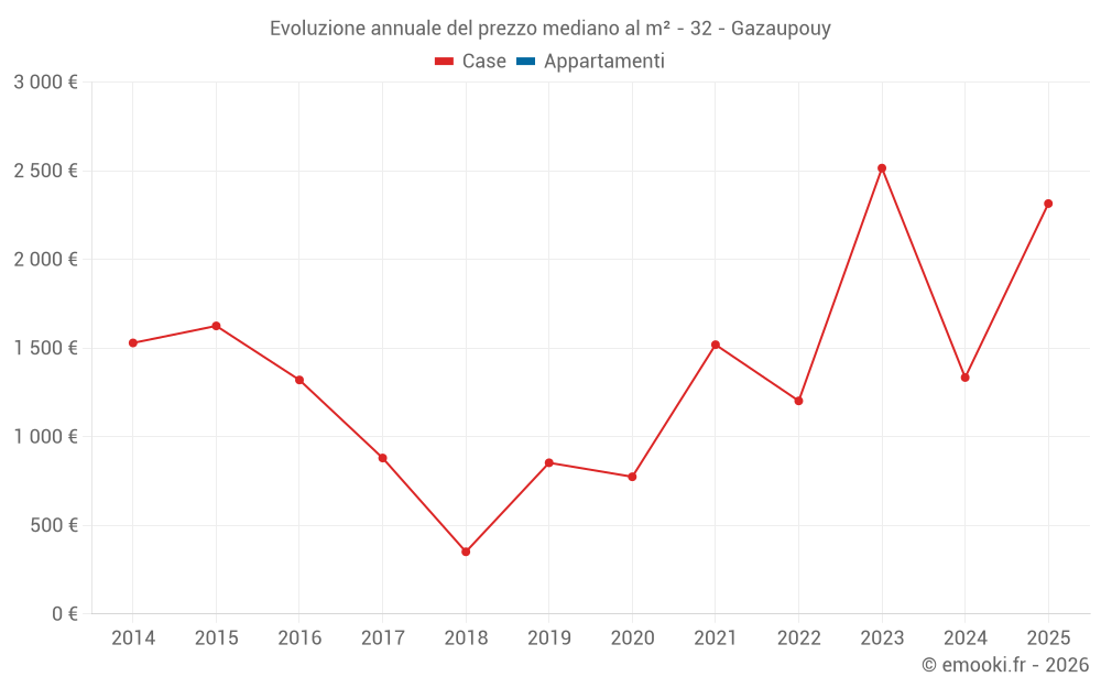 Evoluzione del prezzo mediano al m² degli appartamenti