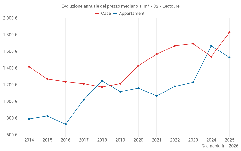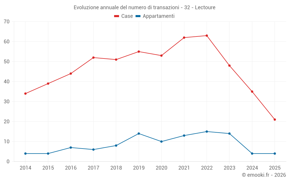 Il prezzo mediano sulle 21 transazioni di case degli ultimi 6 mesi nel comune di Lectoure era di 1 828 € al metro quadrato per un valore patrimoniale mediano di 180 000 €. In questo periodo il 60% delle transazioni era tra 1 000 e 2 294 € al metro quadrato (dal 2° all'8° decile).