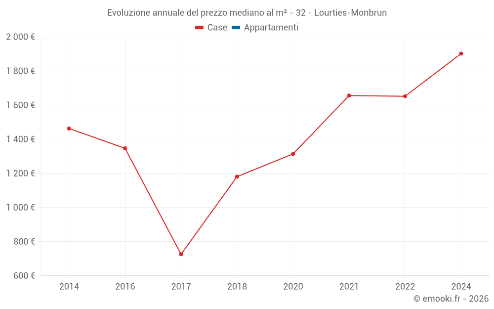 Evoluzione del prezzo mediano al m² degli appartamenti