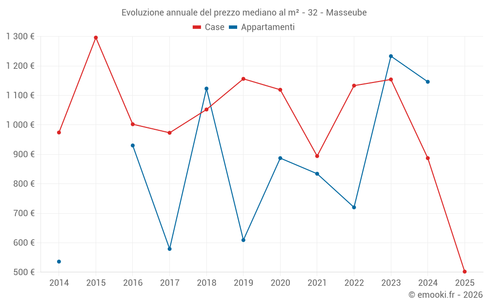 Qual è il prezzo al m2 delle case in Masseube?