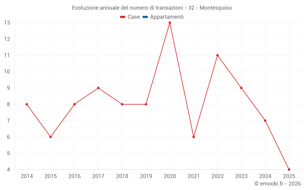 Il prezzo mediano sulle 16 transazioni di case degli ultimi 24 mesi nel comune di Montesquiou era di 1 526 € al metro quadrato per un valore patrimoniale mediano di 129 990 €. In questo periodo il 60% delle transazioni era tra 357 e 1 832 € al metro quadrato (dal 2° all'8° decile).