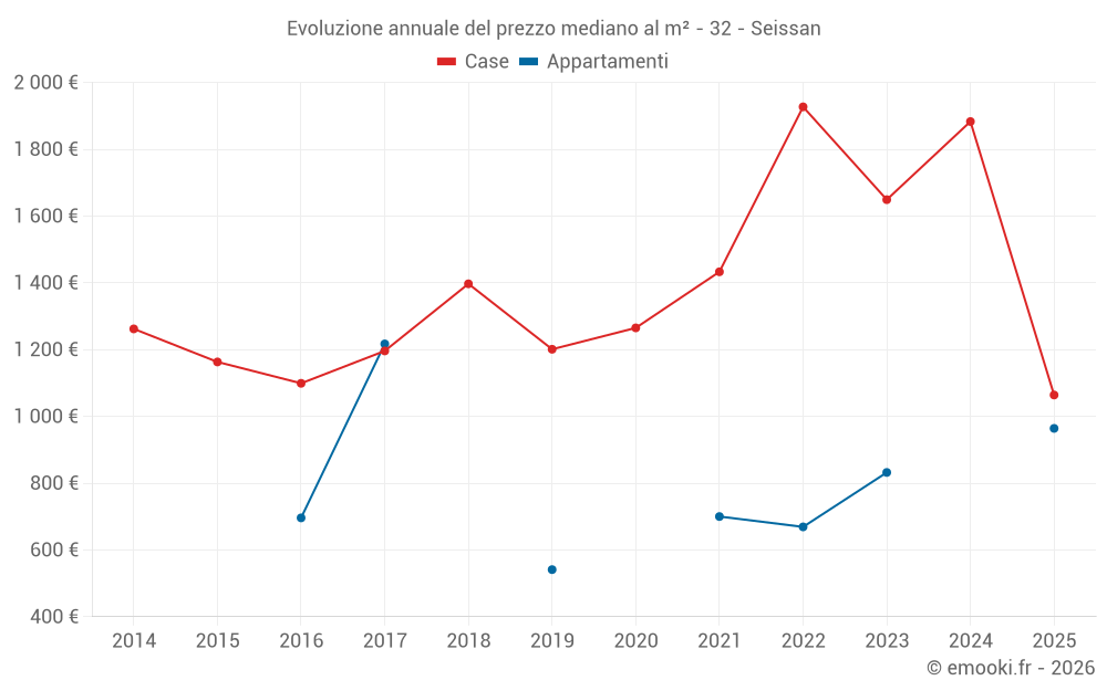Il prezzo mediano sulle 18 transazioni di case degli ultimi 12 mesi nel comune di Seissan era di 1 601 € al metro quadrato per un valore patrimoniale mediano di 157 500 €. In questo periodo il 60% delle transazioni era tra 1 061 e 2 225 € al metro quadrato (dal 2° all'8° decile).