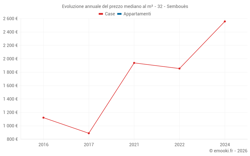 Evoluzione del prezzo mediano al m² degli appartamenti