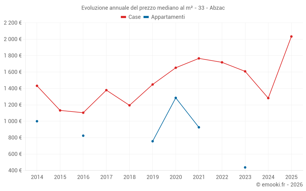 Qual è il prezzo al m2 delle case in Abzac?