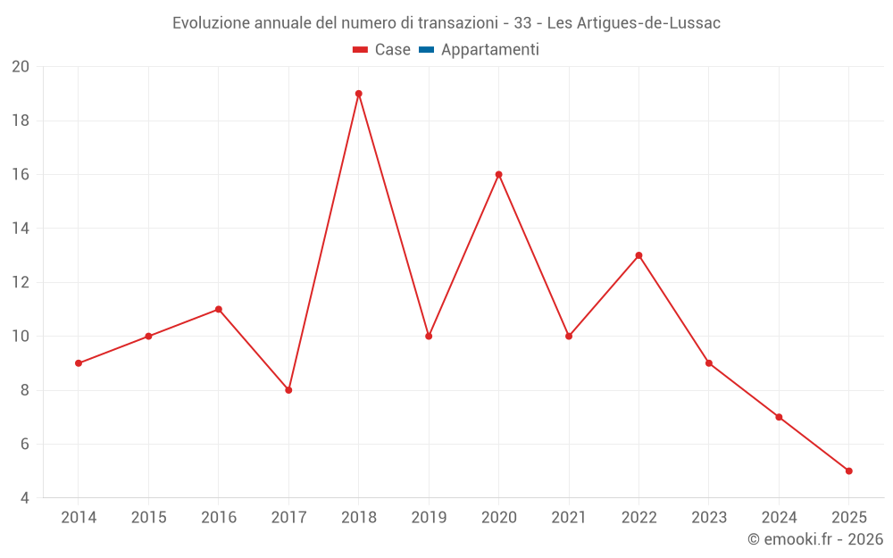 Il prezzo mediano sulle 19 transazioni di case degli ultimi 24 mesi nel comune di Les Artigues-de-Lussac era di 2 195 € al metro quadrato per un valore patrimoniale mediano di 198 000 €. In questo periodo il 60% delle transazioni era tra 1 266 e 2 431 € al metro quadrato (dal 2° all'8° decile).