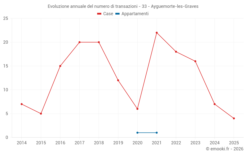 Il prezzo mediano sulle 18 transazioni di case degli ultimi 24 mesi nel comune di Ayguemorte-les-Graves era di 3 206 € al metro quadrato per un valore patrimoniale mediano di 355 000 €. In questo periodo il 60% delle transazioni era tra 2 593 e 3 528 € al metro quadrato (dal 2° all'8° decile).