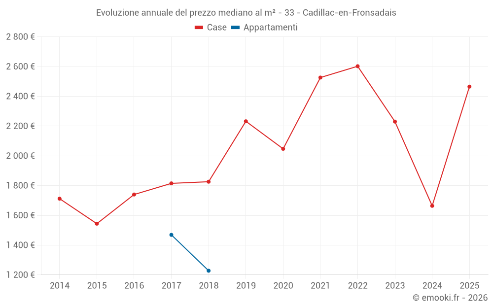 Qual è il prezzo al m2 delle case in Cadillac-en-Fronsadais?