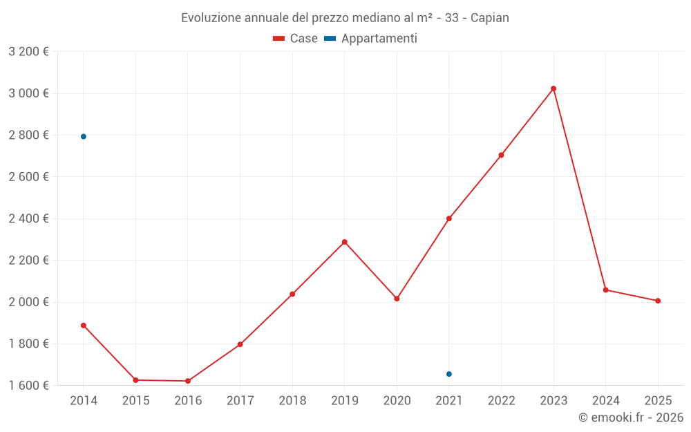 Il prezzo al m² delle case è diminuito del 34% da 2 anni, ma è aumentato del 24% in 9 anni.