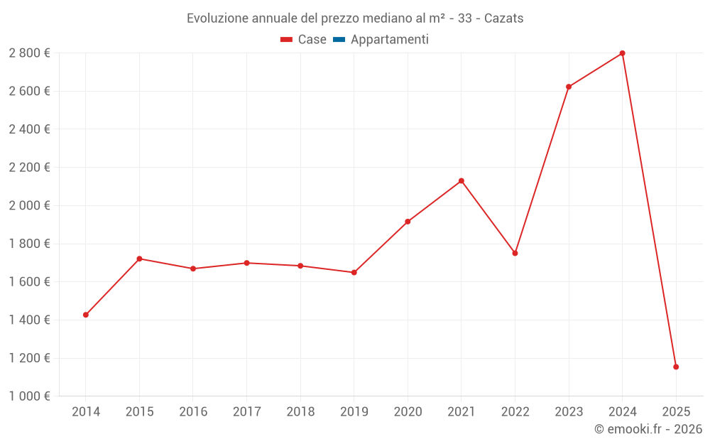 Evoluzione del prezzo mediano al m² degli appartamenti