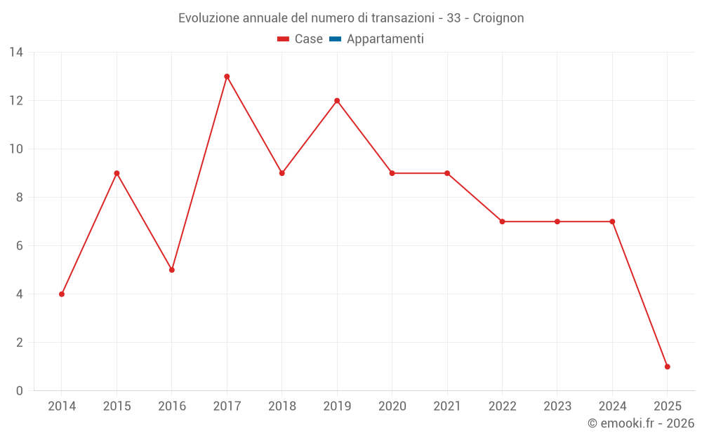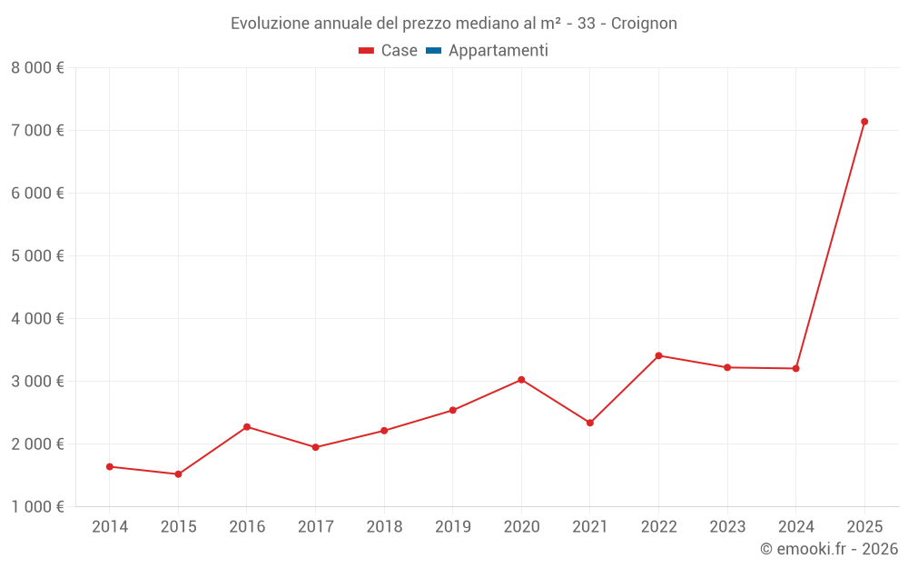 Il prezzo mediano sulle 14 transazioni di case degli ultimi 24 mesi nel comune di Croignon era di 3 214 € al metro quadrato per un valore patrimoniale mediano di 390 150 €. In questo periodo il 60% delle transazioni era tra 3 052 e 3 556 € al metro quadrato (dal 2° all'8° decile).