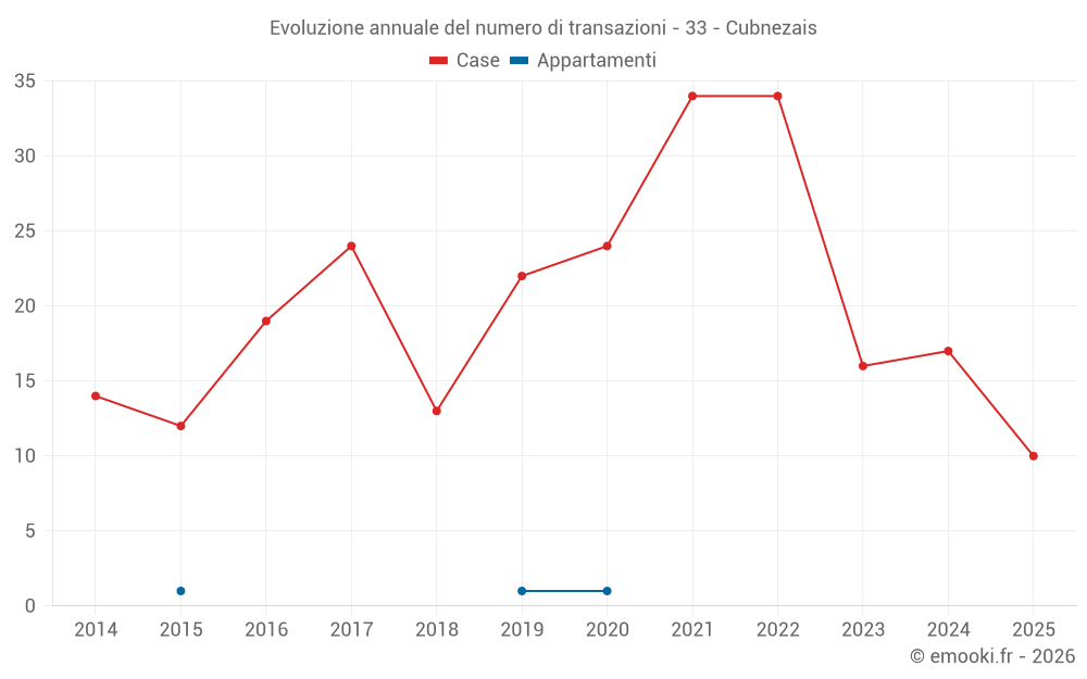 Il prezzo mediano sulle 19 transazioni di case degli ultimi 12 mesi nel comune di Cubnezais era di 2 732 € al metro quadrato per un valore patrimoniale mediano di 250 400 €. In questo periodo il 60% delle transazioni era tra 1 526 e 2 944 € al metro quadrato (dal 2° all'8° decile).