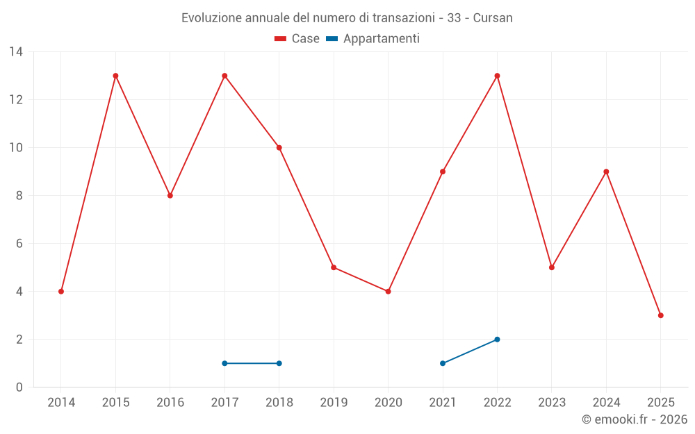 Il prezzo mediano sulle 17 transazioni di case degli ultimi 24 mesi nel comune di Cursan era di 2 900 € al metro quadrato per un valore patrimoniale mediano di 323 900 €. In questo periodo il 60% delle transazioni era tra 1 586 e 3 279 € al metro quadrato (dal 2° all'8° decile).