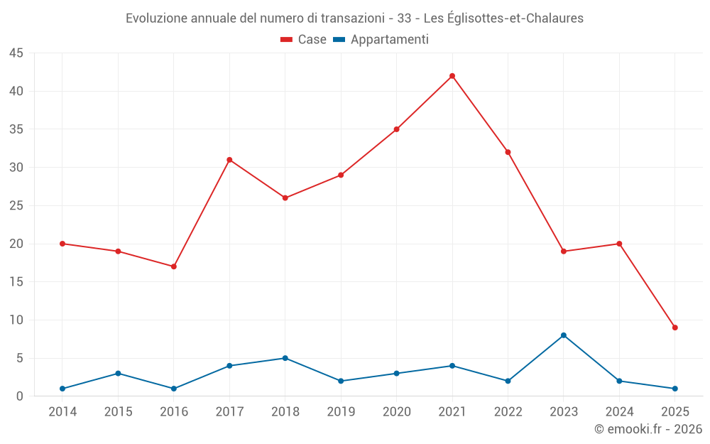 Il prezzo mediano sulle 19 transazioni di case degli ultimi 12 mesi nel comune di Les Églisottes-et-Chalaures era di 1 353 € al metro quadrato per un valore patrimoniale mediano di 116 000 €. In questo periodo il 60% delle transazioni era tra 1 046 e 1 628 € al metro quadrato (dal 2° all'8° decile).