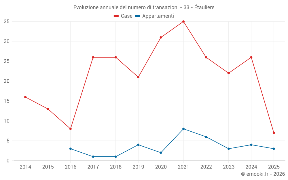 Il prezzo mediano sulle 21 transazioni di case degli ultimi 12 mesi nel comune di Étauliers era di 1 397 € al metro quadrato per un valore patrimoniale mediano di 95 000 €. In questo periodo il 60% delle transazioni era tra 1 000 e 1 833 € al metro quadrato (dal 2° all'8° decile).