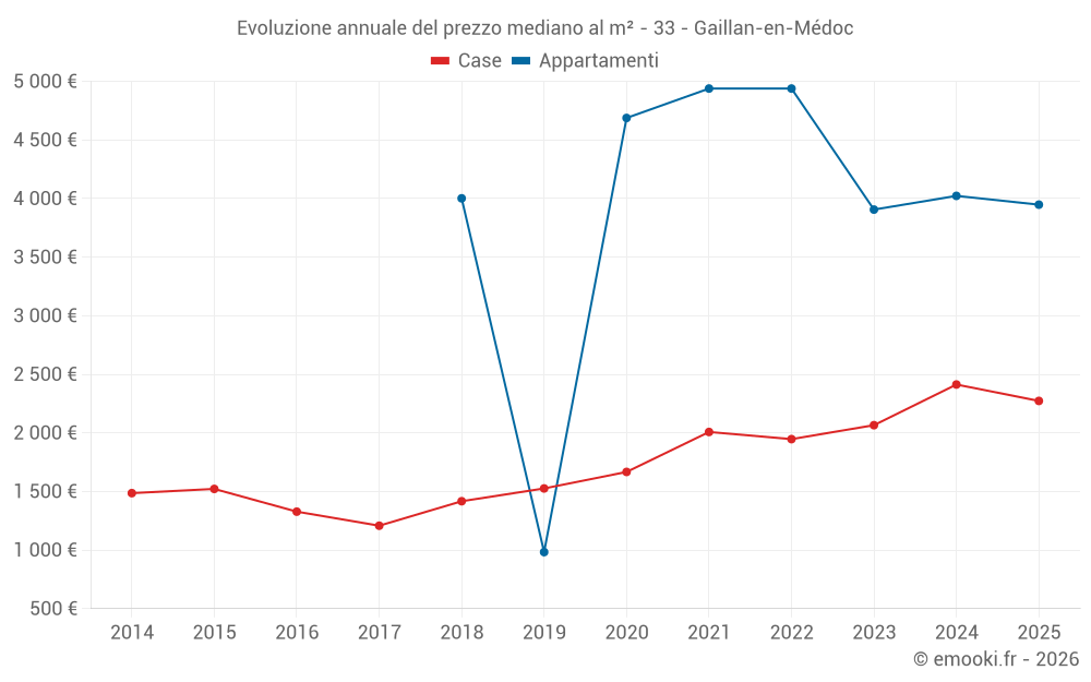 Qual è il prezzo al m2 delle case in Gaillan-en-Médoc?