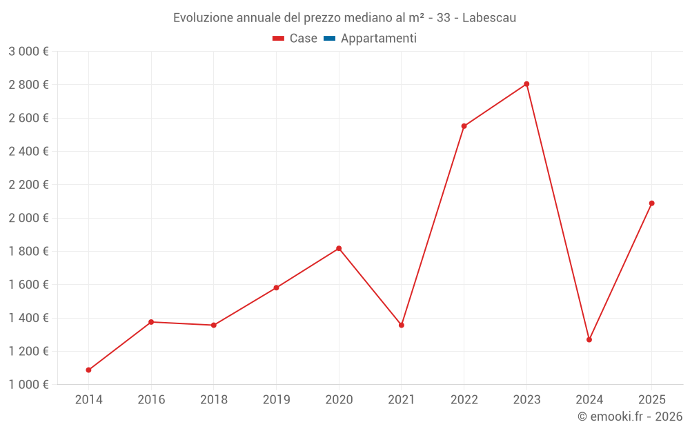 Evoluzione del prezzo mediano al m² degli appartamenti