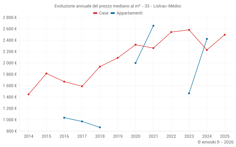 Qual è il prezzo al m2 delle case in Listrac-Médoc?