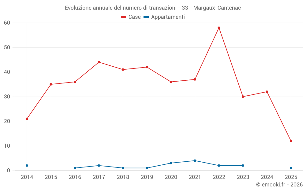 Il prezzo mediano sulle 31 transazioni di case degli ultimi 12 mesi nel comune di Margaux-Cantenac era di 1 982 € al metro quadrato per un valore patrimoniale mediano di 180 000 €. In questo periodo il 60% delle transazioni era tra 1 667 e 2 778 € al metro quadrato (dal 2° all'8° decile).