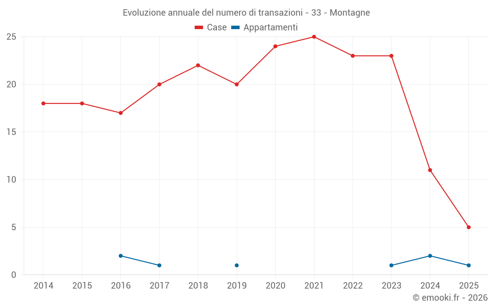 Il prezzo mediano sulle 26 transazioni di case degli ultimi 24 mesi nel comune di Montagne era di 2 112 € al metro quadrato per un valore patrimoniale mediano di 265 752 €. In questo periodo il 60% delle transazioni era tra 986 e 2 824 € al metro quadrato (dal 2° all'8° decile).