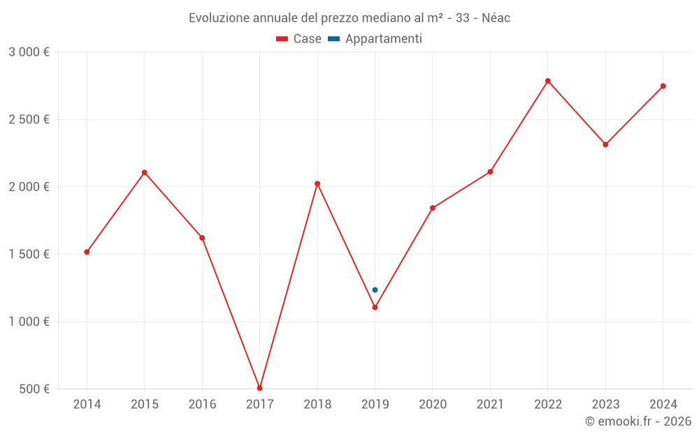 Evoluzione del prezzo mediano al m² degli appartamenti