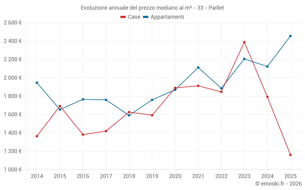 Il prezzo mediano sulle 23 transazioni di case degli ultimi 24 mesi nel comune di Paillet era di 1 898 € al metro quadrato per un valore patrimoniale mediano di 224 000 €. In questo periodo il 60% delle transazioni era tra 1 261 e 2 988 € al metro quadrato (dal 2° all'8° decile).