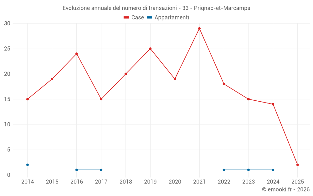 Il prezzo mediano sulle 22 transazioni di case degli ultimi 24 mesi nel comune di Prignac-et-Marcamps era di 2 378 € al metro quadrato per un valore patrimoniale mediano di 228 250 €. In questo periodo il 60% delle transazioni era tra 2 017 e 2 817 € al metro quadrato (dal 2° all'8° decile).
