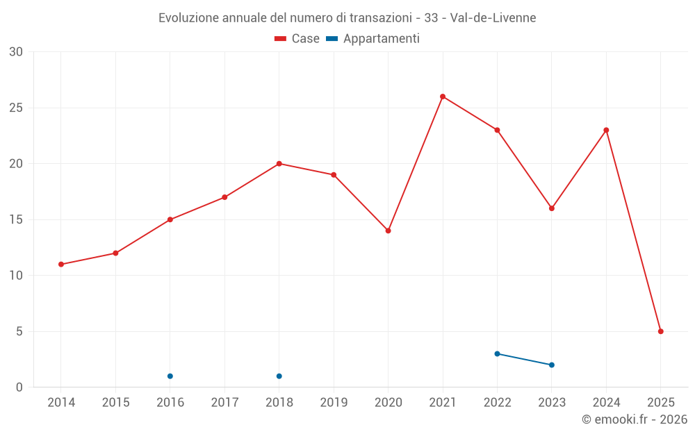 Il prezzo mediano sulle 20 transazioni di case degli ultimi 12 mesi nel comune di Val-de-Livenne era di 1 286 € al metro quadrato per un valore patrimoniale mediano di 137 500 €. In questo periodo il 60% delle transazioni era tra 745 e 1 797 € al metro quadrato (dal 2° all'8° decile).