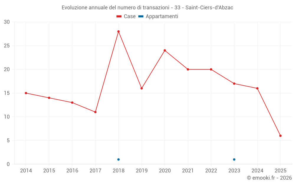 Il prezzo mediano sulle 19 transazioni di case degli ultimi 12 mesi nel comune di Saint-Ciers-d'Abzac era di 1 824 € al metro quadrato per un valore patrimoniale mediano di 136 000 €. In questo periodo il 60% delle transazioni era tra 1 011 e 2 284 € al metro quadrato (dal 2° all'8° decile).