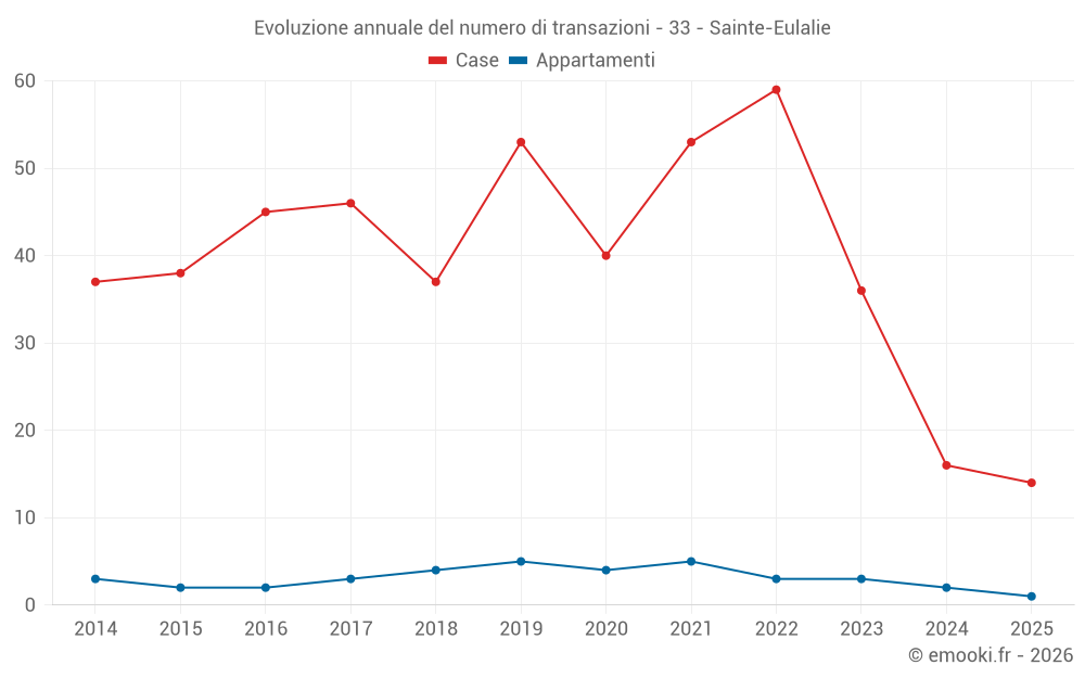 Il prezzo mediano sulle 23 transazioni di case degli ultimi 12 mesi nel comune di Sainte-Eulalie era di 2 700 € al metro quadrato per un valore patrimoniale mediano di 300 000 €. In questo periodo il 60% delle transazioni era tra 1 912 e 3 502 € al metro quadrato (dal 2° all'8° decile).