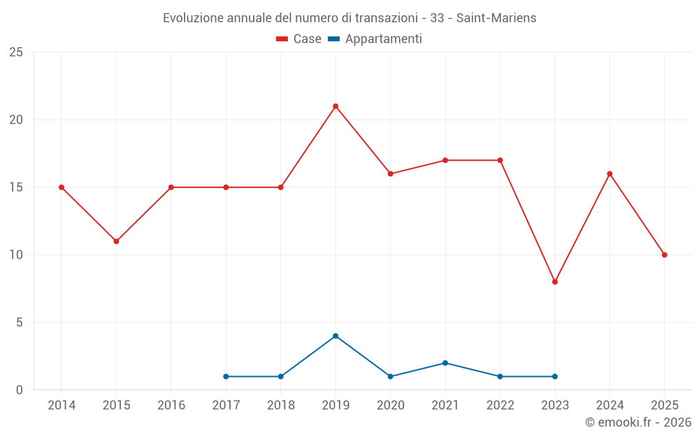 Il prezzo mediano sulle 16 transazioni di case degli ultimi 12 mesi nel comune di Saint-Mariens era di 1 821 € al metro quadrato per un valore patrimoniale mediano di 175 650 €. In questo periodo il 60% delle transazioni era tra 1 600 e 2 165 € al metro quadrato (dal 2° all'8° decile).