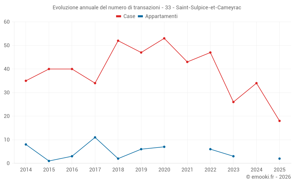 Il prezzo mediano sulle 18 transazioni di case degli ultimi 6 mesi nel comune di Saint-Sulpice-et-Cameyrac era di 2 615 € al metro quadrato per un valore patrimoniale mediano di 274 075 €. In questo periodo il 60% delle transazioni era tra 2 280 e 3 199 € al metro quadrato (dal 2° all'8° decile).