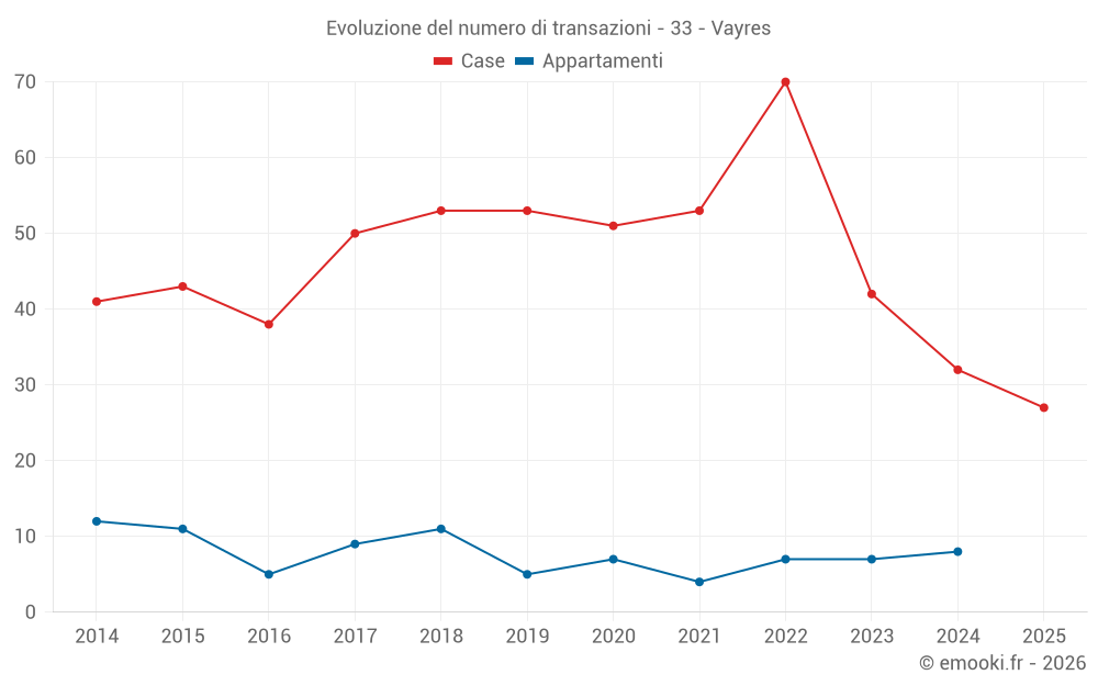 Attenzione, ultimo anno incompleto. Le proiezioni sono effettuate in base alle proporzioni tra semestri dell'anno precedente a livello dipartimentale/nazionale e per tipo di proprietà.