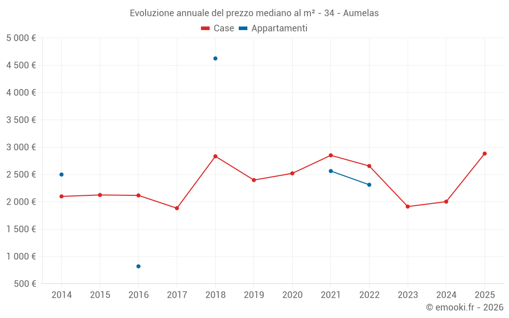 Evoluzione del prezzo mediano al m² degli appartamenti