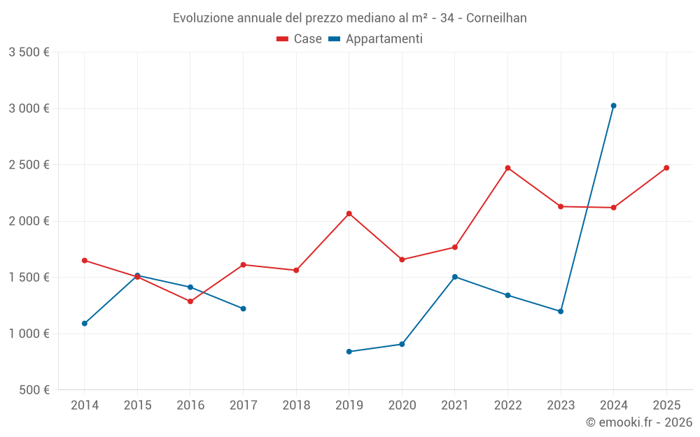 Qual è il prezzo al m2 delle case in Corneilhan?