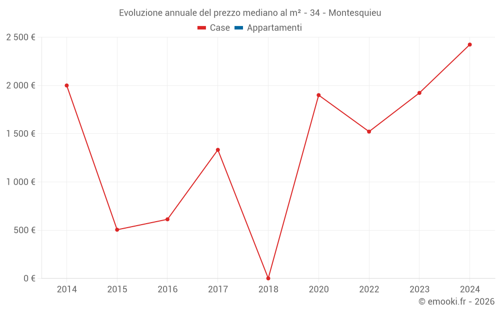 Evoluzione del prezzo mediano al m² degli appartamenti