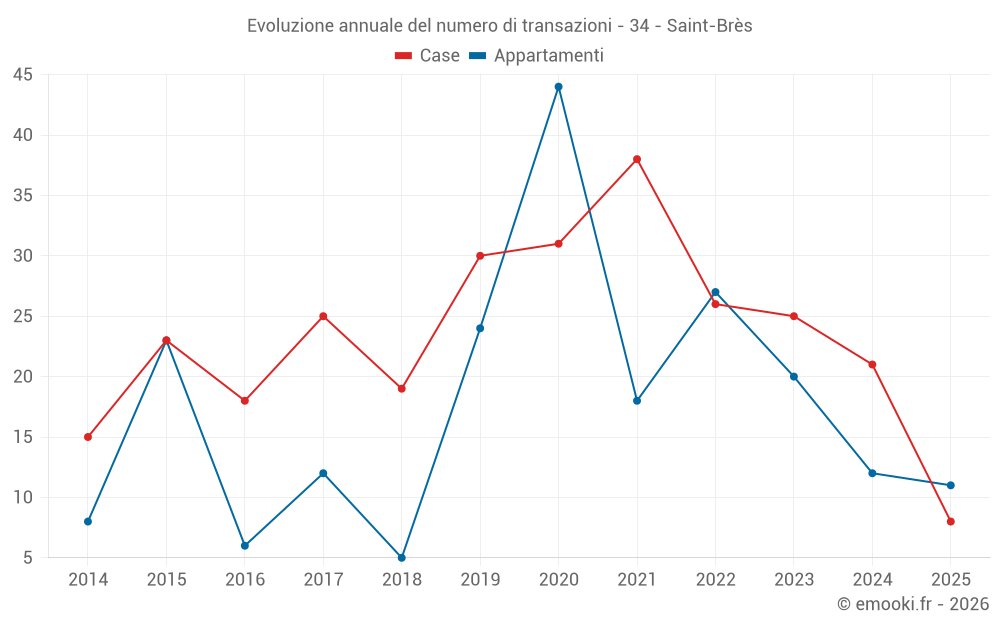 Il prezzo mediano sulle 18 transazioni di appartamenti degli ultimi 12 mesi nel comune di Saint-Brès era di 3 774 € al metro quadrato per un valore patrimoniale mediano di 189 625 €. In questo periodo il 60% delle transazioni era tra 2 878 e 3 956 € al metro quadrato (dal 2° all'8° decile).