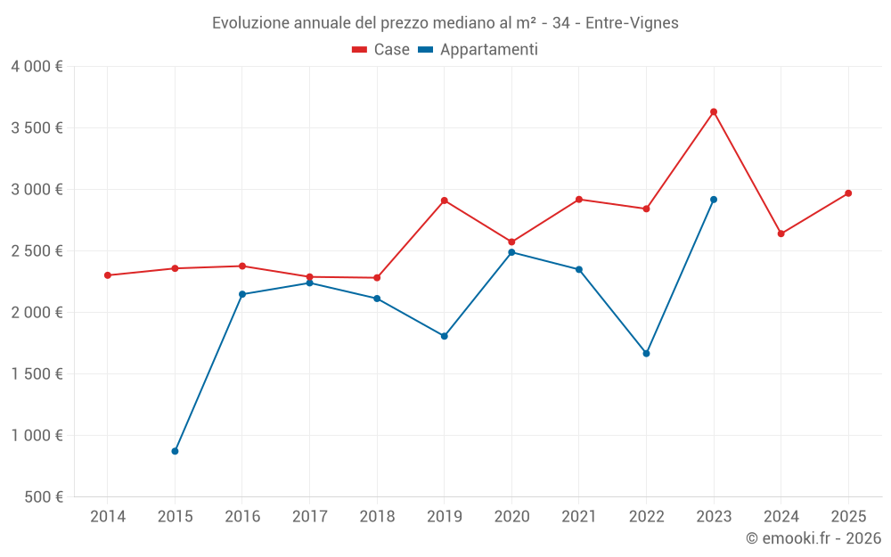 Qual è il prezzo al m2 delle case in Entre-Vignes?