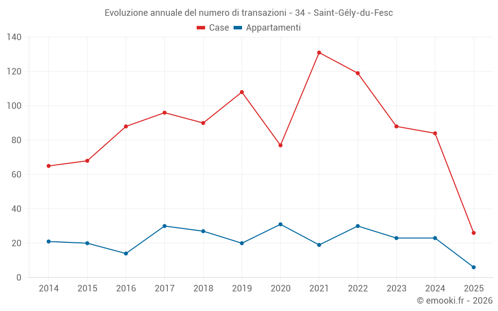 Il prezzo mediano sulle 26 transazioni di case degli ultimi 6 mesi nel comune di Saint-Gély-du-Fesc era di 4 358 € al metro quadrato per un valore patrimoniale mediano di 478 000 €. In questo periodo il 60% delle transazioni era tra 3 876 e 4 998 € al metro quadrato (dal 2° all'8° decile).