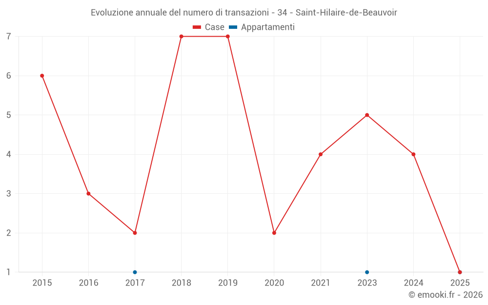 Attenzione, ultimo anno incompleto. Le proiezioni sono effettuate in base alle proporzioni tra semestri dell'anno precedente a livello dipartimentale/nazionale e per tipo di proprietà .